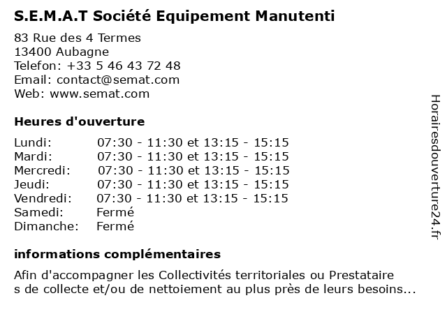 | Mercredi | 07:30-11:30 et 13:15-15:15 |