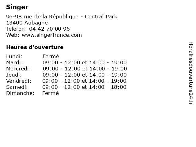 | Mercredi | 09:00-12:00 et 14:00-19:00 |