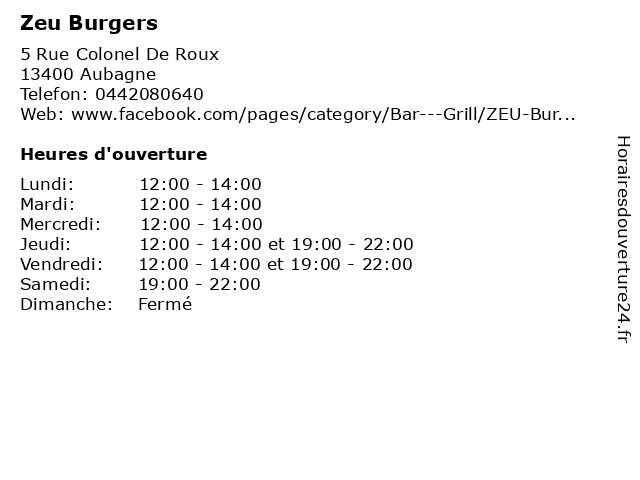| Jeudi | 12:00-14:00 et 19:00-22:00 |