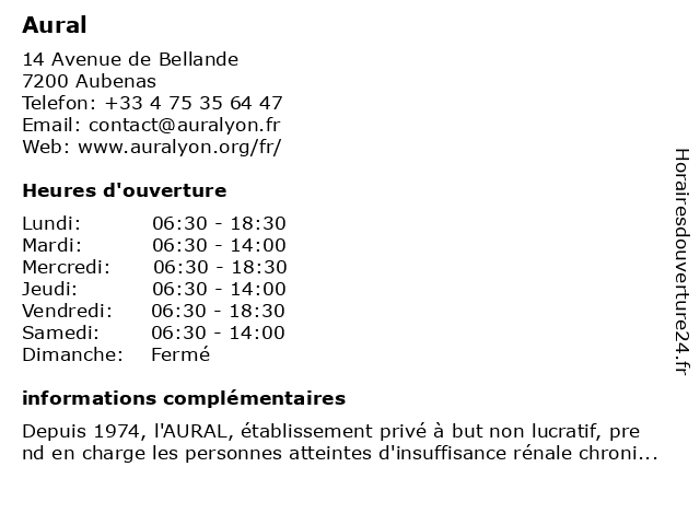 Depuis 1974, l'AURAL, établissement privé à but non lucratif, prend en charge les personnes atteintes d'insuffisance rénale chronique. Nos 360 professionnels proposent : Différentes modali...