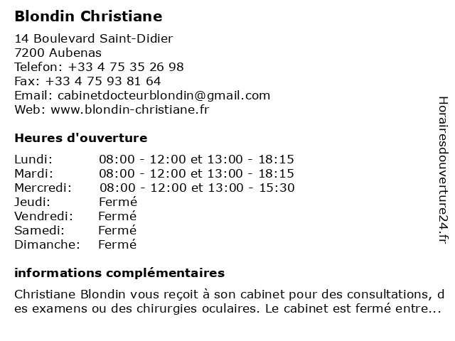 Lundi | 08:00-12:00 et 13:00-18:15 |