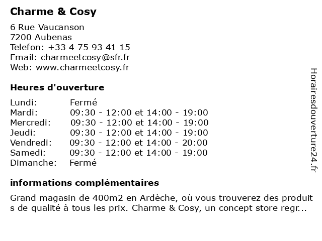 | Mercredi | 09:30-12:00 et 14:00-19:00 |