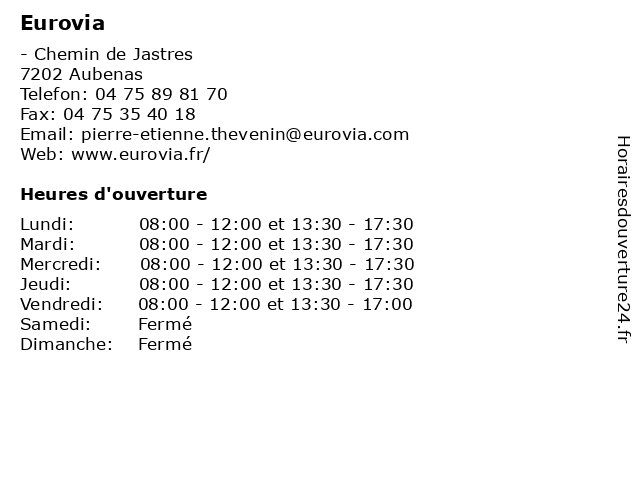 Lundi | 08:00-12:00 et 13:30-17:30 |
