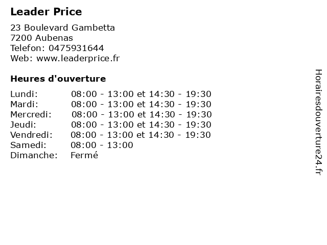 | Lundi | 08:00-13:00 et 14:30-19:30 |