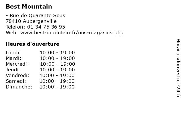 1 Best Mountain (Distance: 1,37 km) - Route départementale 14, 78410 Aubergenville best, femme, homme, mode, mountain 2 Best Mountain (Distance: 23,26 km) . Avenue Gutenberg, 78310 Mauperas beaute, best, cafe, calzedonia, chaussures, enfants, lingerie, mode femmes, mode hommes, mountain, restaurant, sec, service, sport 3 Best Western Hôtel Victor Hugo Adhérent (Distance: 33,44 km) 19 rue Copernic, 75001 PARIS adhérent, bar, best, chambres, hugo, hôtel, victor, western 4 Hôtel Best Western (Distance: 35,26 km) 73 Rue de la Louvière, 78120 Rambouillet accès, best, et, hebergement, hotel, hôtel, réception, western 5 Best Mountain (Distance: 35,99 km) 21 Rue Auber, 75009 Paris best, best mountain, femme, homme, magasin, mountain 6 Hotel Best Western Diva Opera (Distance: 37,21 km) 11 Rue de Trévise, 75009 Paris bar, best, chambres, diva, hotel, opera, restaurant, western |