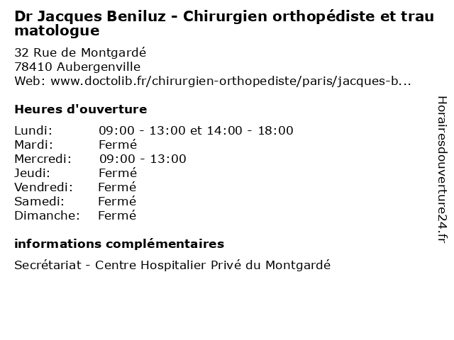 | Lundi | 09:00-13:00 et 14:00-18:00 |