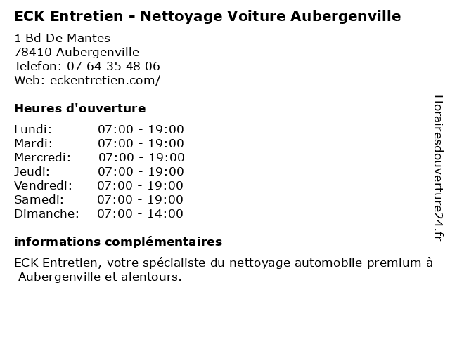 | Lundi | 07:00-19:00 |