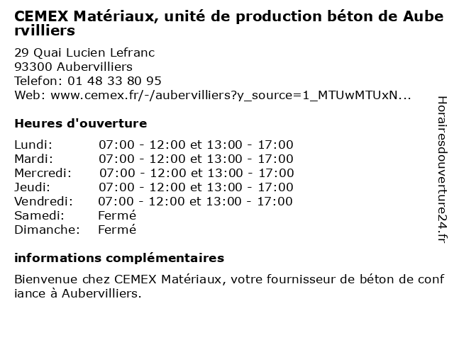 Termes de recherche pour CEMEX Matériaux, unité de production béton de Aubervilliers:aubervilliers, de, unité, materiaux, beton, production, cemex, fournisseur de matériel pour le béton |