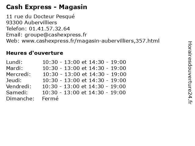 1 Cash Express - Magasin (Distance: 3,37 km) 6 Passage des Arbalétriers, 93200 Saint-Denis achat, cash, express, magasin, occasions, produits, vente 2 Cash Express - Magasin (Distance: 8,65 km) 17 avenue Duquesne, 75007 Paris achat, acheter, cash, d'occasion., express, magasin, nos, particuliers, produits, venez, vente 3 Cash Express - Magasin (Distance: 10,85 km) 2 Avenue Robert Schumann, 95350 Saint-Brice-sous-Forêt achat, cash, express, magasin, occasions, produits, vente 4 Cash Express - Magasin (Distance: 14,91 km) 58 avenue de Fouilleuse, 92500 Rueil Malmaison achat, acheter, cash, d'occasion., express, magasin, nos, particuliers, produits, venez, vente 5 Cash Express - Salle d'achats (Distance: nan km) 11 rue du Docteur Pesqué, 93300 Aubervilliers achat, cash, d'achats, d'occasion., express, objets, particuliers, produits, salle, vendre, venez, vente, vos 6 V.t.t Cash &Carry (Distance: 0,84 km) 5 Rue Emile Zola, 93120 La Courneuve carry, cash, epiceries, kanchana |
