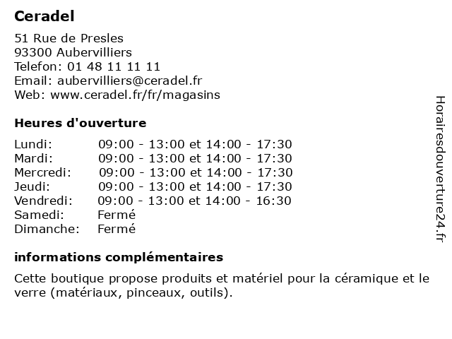 Lundi | 09:00-13:00 et 14:00-17:30 |