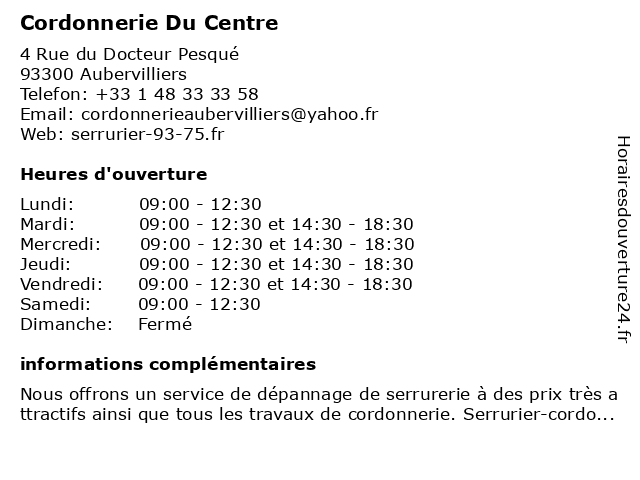 | Mardi | 09:00-12:30 et 14:30-18:30 |