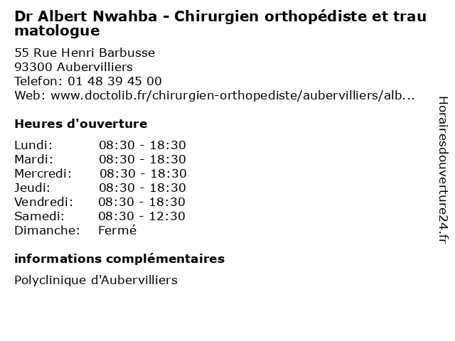 Termes de recherche pour Dr Albert Nwahba - Chirurgien orthopédiste et traumatologue:et, aubervilliers, albert, dr, polyclinique, chirurgien, orthopédiste, traumatologue, nwahba |