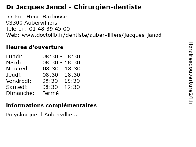 1 École maternelle publique Jacques Prévert (Distance: 0,19 km) 1 Rue des Cités, 93300 Aubervilliers cours, education, jacques, maternelle, prévert, publique, services, École, école 2 Dr Jean-Jacques Chiche - Radiologue (Distance: 0,39 km) 55 Rue Henri Barbusse, 93300 Aubervilliers chiche, dr, jacques, jean, médecin, médecine, médical, pharmaceutique, radiologue, secrétariat, traitement 3 Dr Jacques Baranes - Chirurgien-dentiste (Distance: 1,01 km) 23 Rue Madeleine Vionnet, 93300 Aubervilliers baranes, chirurgien, dentiste, dr, jacques, médecin, médecine, médical, pharmaceutique, traitement 4 Église catholique Saint-Jacques Saint-Christophe de la Villette (Distance: 1,55 km) 6 Place de Bitche, 75019 Paris catholique, christianisme, christophe, chrétien, de, eglise, jacques, la, libre, pasteur, religion, saint, villette, église 5 Dr Jacques Mantoux - Cardiologue (Distance: 1,63 km) 9-21 Sente des Dorées, 75019 Paris cardio, cardiologie, cardiologue, coeur, dr, jacques, mantoux 6 École maternelle publique Jean-Jacques Rousseau (Distance: 1,72 km) 2 Rue Paul Doumer, 93300 Aubervilliers cours, education, jacques, jean, maternelle, publique, rousseau, services, École, école |