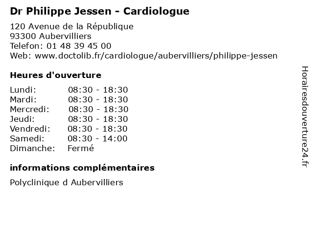 1 Dr Fariza Medkour - Cardiologue (Distance: 0,06 km) 55 Rue Henri Barbusse, 93300 Aubervilliers cardiologue, dr, fariza, medkour, médecin, médecine, médical, pharmaceutique, traitement 2 Dr Thierry Perez - Cardiologue (Distance: 0,06 km) 55 Rue Henri Barbusse, 93300 Aubervilliers cardiologue, dr, médecin, médecine, médical, perez, pharmaceutique, thierry, traitement 3 Dr Sarah Hamouda - Cardiologue (Distance: 0,06 km) 55 Rue Henri Barbusse, 93300 Aubervilliers cardio, cardiologie, cardiologue, coeur, dr, hamouda, sarah 4 Dr Fariza Medkour - Cardiologue (Distance: 1,08 km) 120 Avenue de la République, 93300 Aubervilliers cardiologue, dr, fariza, medkour, médecins, médicaments, santé, secrétariat, spécialiste 5 Dr Cédric Gaultier - Cardiologue (Distance: 1,79 km) 11 Rue Etienne Marcel, 93500 Pantin cardiologie, cardiologue, cédric, docteur, dr, gaultier, médecin 6 Dr Albert Boccara - Cardiologue (Distance: 1,84 km) 10-12 Rue Eugène et Marie-Louise Cornet, 93500 Pantin albert, boccara, cardiologue, dr, médecin, médecine, médical, pharmaceutique, traitement |