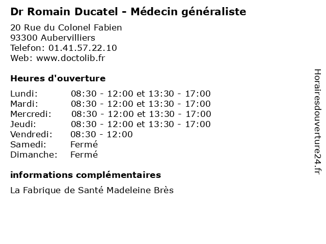 | Lundi | 08:30-12:00 et 13:30-17:00 |