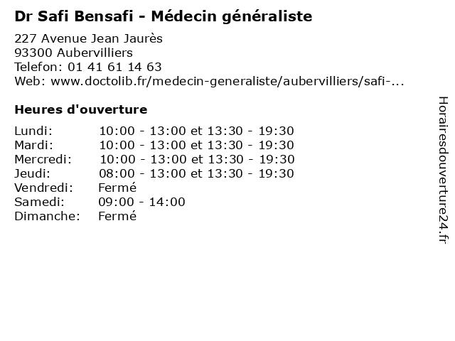 | Mercredi | 10:00-13:00 et 13:30-19:30 |