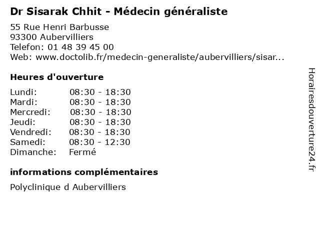 1 Dr Fariza Medkour - Cardiologue (Distance: 0,00 km) 55 Rue Henri Barbusse, 93300 Aubervilliers cardiologue, dr, fariza, medkour, médecin, médecine, médical, pharmaceutique, traitement 2 Dr Thierry Perez - Cardiologue (Distance: 0,00 km) 55 Rue Henri Barbusse, 93300 Aubervilliers cardiologue, dr, médecin, médecine, médical, perez, pharmaceutique, thierry, traitement 3 Dr Éric Plot - Chirurgien plasticien et esthétique (Distance: 0,00 km) 55 Rue Henri Barbusse, 93300 Aubervilliers chirurgien, dr, esthétique, et, médecin, médecine, médical, pharmaceutique, plasticien, plot, traitement, éric 4 Dr Gilles Recanati - Dermatologue (Distance: 0,00 km) 55 Rue Henri Barbusse, 93300 Aubervilliers dermatologue, dr, gilles, médecin, médecine, médical, pharmaceutique, recanai, recanat, recanati, traitement 5 Sabrina Chaabaoui Taba - Orthoptiste (Distance: 0,00 km) 55 Rue Henri Barbusse, 93300 Aubervilliers chaabaoui, médecin, médecine, médical, orthoptiste, pharmaceutique, sabrina, secrétariat, taba, traitement 6 Dr Alain Levy - Radiologue (Distance: 0,00 km) 55 Rue Henri Barbusse, 93300 Aubervilliers alain, dr, levy, médecin, médecine, médical, pharmaceutique, radiologue, secrétariat, traitement |