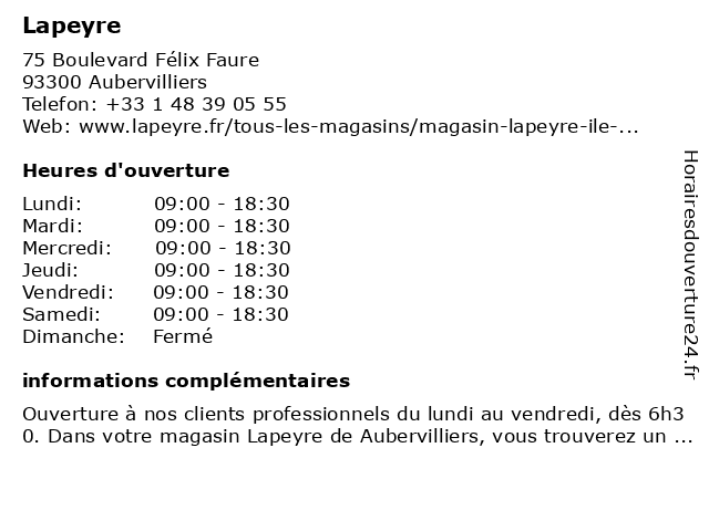 | Samedi | 09:00-18:30 |