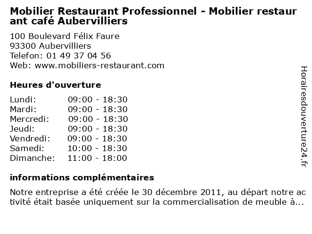 | Lundi | 09:00-18:30 |