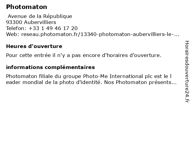2 Photomaton (Distance: 1,40 km) 43 RUE DES GARDINOUX STATION RATP LIGNE 12, 93300 Aubervilliers photomaton 6 |