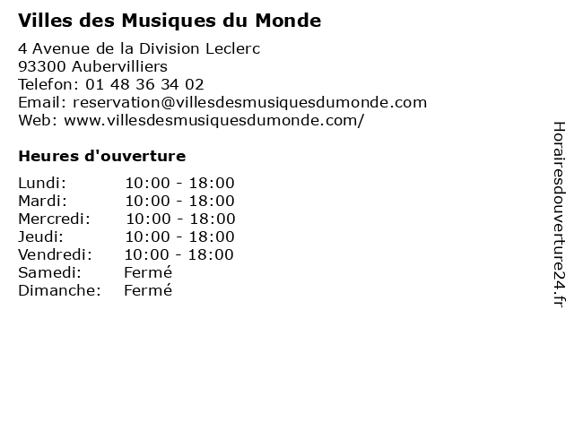 | Samedi | Fermé |