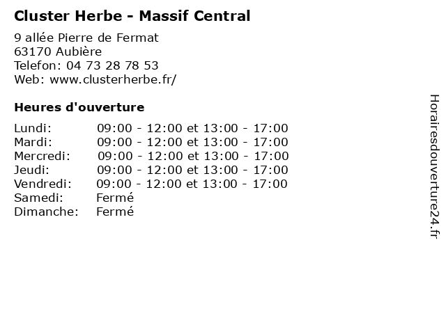 | Lundi | 09:00-12:00 et 13:00-17:00 |
