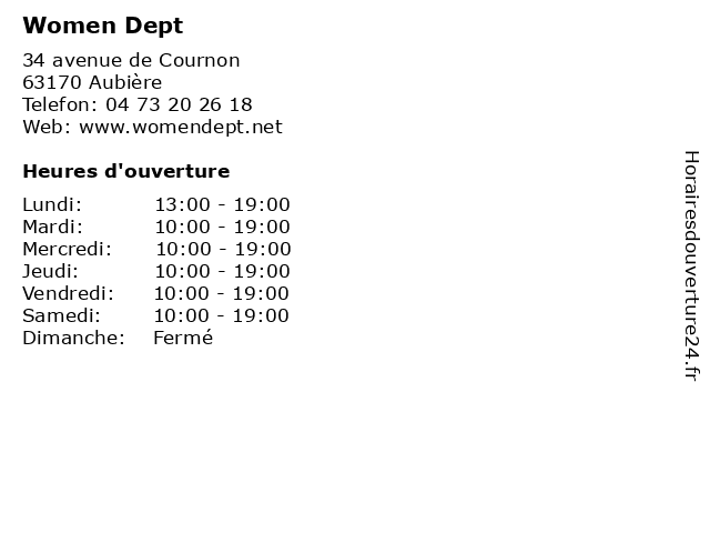 1 Women Dept. (Distance: 4,79 km) 1 rue Saint-Genes, 63000 Clermont Ferrand accessoires, chaussures, dept., habillement, mode, pret-a-porter, vetements, women 2 IKKS Women (Distance: 5,13 km) 17 Rue du 11 Novembre, 63000 Clermont-Ferrand bebe, boutique, enfants, homme, ikks, mode femme, women 3 Chaussea (Distance: 0,23 km) 10 rue des Chazots, 63170 AUBIERES accessories, chaussea, leather, men, shoes, women 5 Any d'Avray (Distance: 5,47 km) 59 boulevard Gambetta, 63400 Chamalières aderans, any, any d'avray, beauty wellness, d'avray, men, show, women 6 Any d'Avray (Distance: 5,47 km) 59 boulevard Gambetta, 63400 Chamalières aderans, any, any d'avray, beauty wellness, d'avray, men, show, women |