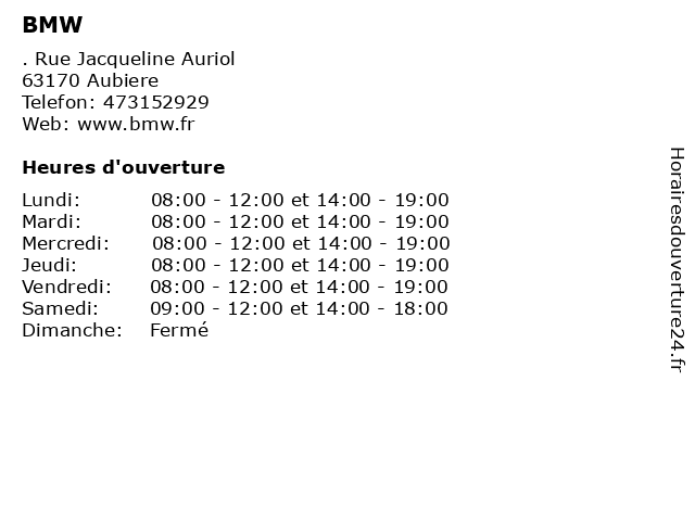 | Lundi | 08:00-12:00 et 14:00-19:00 |