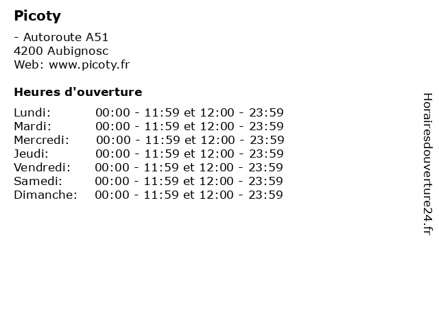 | Dimanche | 00:00-11:59 et 12:00-23:59 |