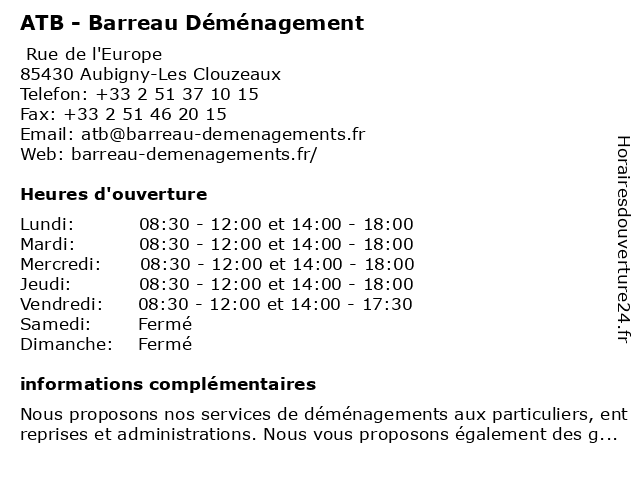 Termes de recherche pour ATB - Barreau Déménagement:atb, barreau, déménagement |
