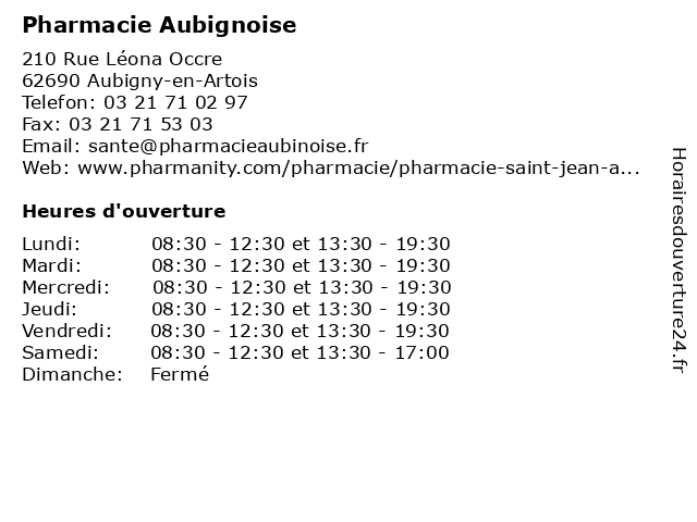 | Mardi | 08:30-12:30 et 13:30-19:30 |