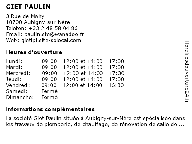 GIET PAULIN à Aubigny-sur-Nère