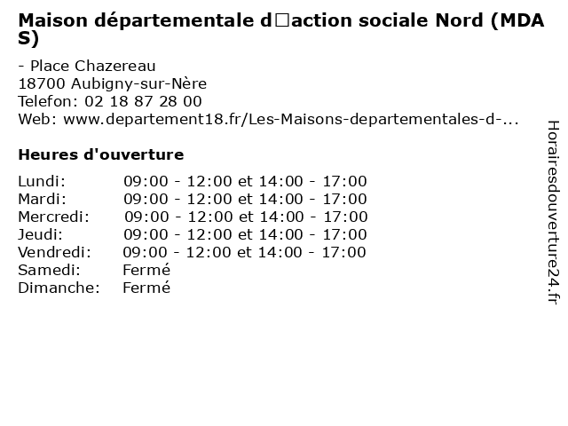 | Mardi | 09:00-12:00 et 14:00-17:00 |
