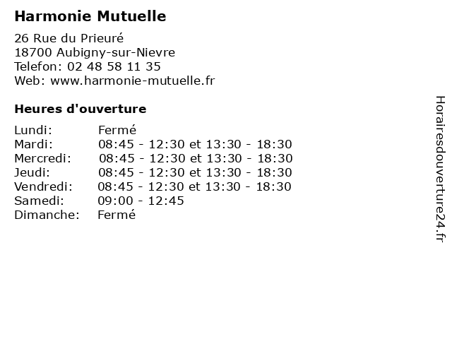 | Mardi | 08:45-12:30 et 13:30-18:30 |