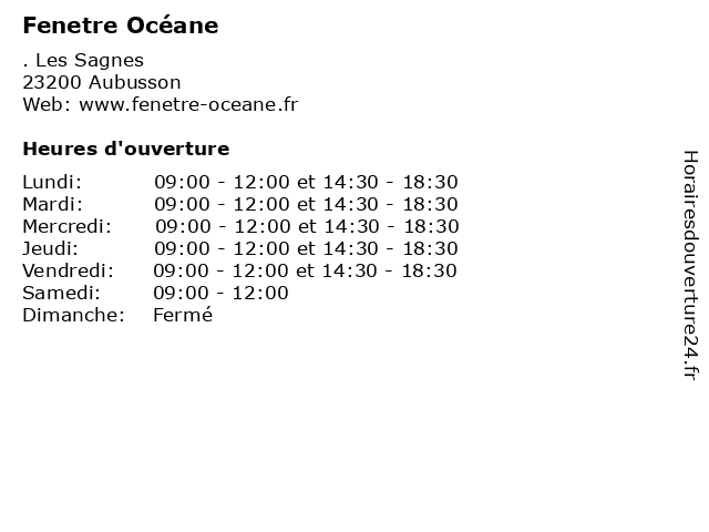 | Lundi | 09:00-12:00 et 14:30-18:30 |