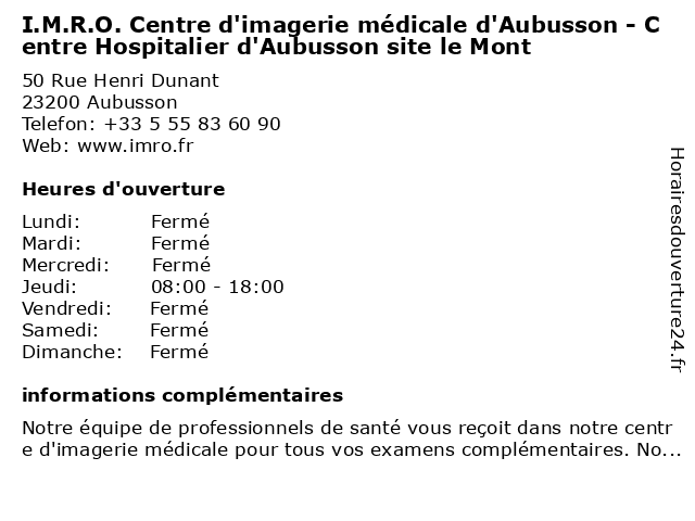 Termes de recherche pour I.M.R.O. Centre d'imagerie médicale d'Aubusson - Centre Hospitalier d'Aubusson site le Mont:le, mont, médicale, centre, d'aubusson, site, hospitalier, d'imagerie, i.m.r.o. |