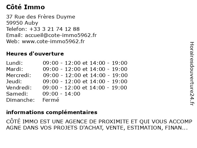| Lundi | 09:00-12:00 et 14:00-19:00 |
