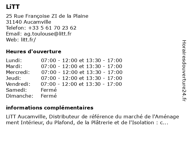 Lundi | 07:00-12:00 et 13:30-17:00 |