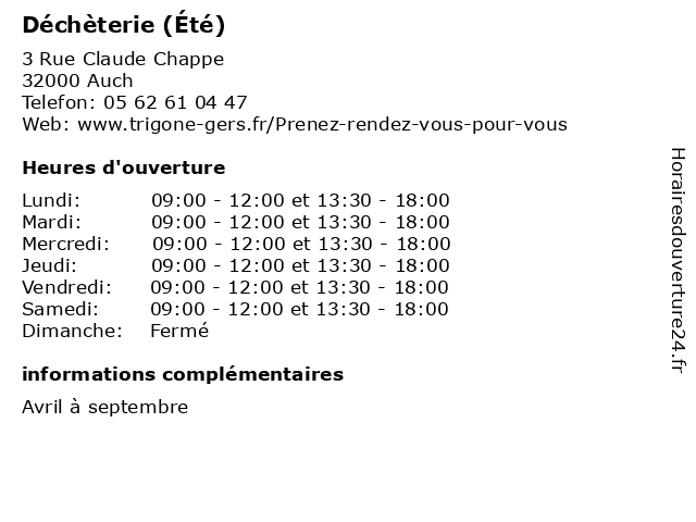 | Samedi | 09:00-12:00 et 13:30-18:00 |