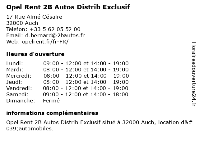 1 Opel 2B Autos Concessionnaire (Distance: 0,00 km) 17 Rue Aimé Césaire, 32000 Auch 2b, autos, concessionnaire, opel 2 Subaru 2B Autos Distrib Exclusif (Distance: 0,01 km) 17 Rue Aimé Césaire, 32000 Auch 2b, autos, distrib, exclusif, subaru 3 Opel Auch (Service Commercial/Vente de véhicules particuliers/utilitaires) (Distance: 0,09 km) 17 rue Aimé Césaire, 32000 Auch auch, commercial/vente, de, opel, particuliers/utilitaires, service, services, véhicules 4 Opel 2B Autos Concessionnaire (Distance: 0,19 km) 17 Rue Aimé Césaire, 32000 Auch 2b, autos, concessionnaire, opel 5 Façades Gersoises - Applicateur Exclusif Vertikal (Distance: 1,14 km) 6 Rue Roger Salengro, 32000 Auch applicateur, exclusif, façades, fissures, gersoises, humidité, peinture, ravalement, vertikal 6 EXCLUSIF AUTOMOBILE (Distance: 4,86 km) Zi Les Malartics, 32810 Preignan atelier d'usinage, automobile, exclusif, magasin de pièces automobiles, magasin de pneus, station-service de changement de l'huile |