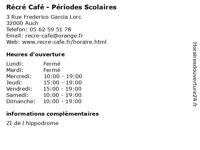 | Lundi | Fermé |