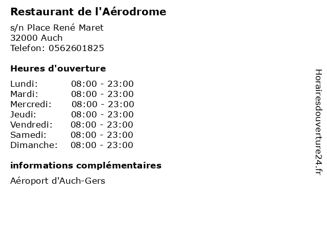 | Dimanche | 08:00-23:00 |
