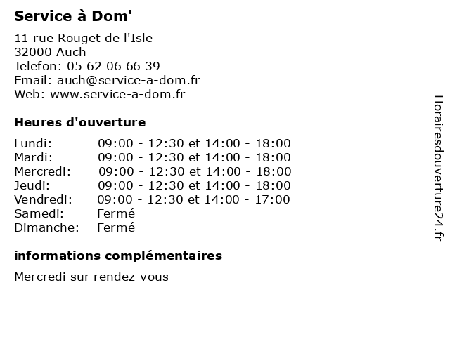 | Lundi | 09:00-12:30 et 14:00-18:00 |
