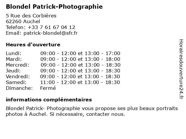 | Vendredi | 09:00-12:00 et 13:00-18:30 |