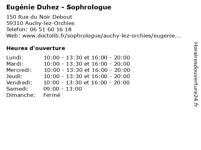 | Mardi | 10:00-13:30 et 16:00-20:00 |