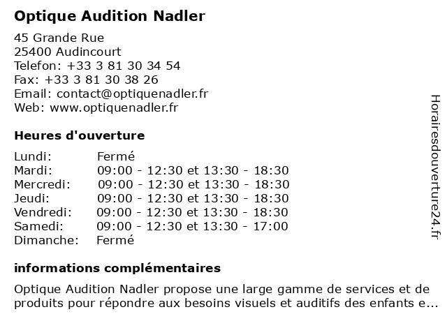 | Mercredi | 09:00-12:30 et 13:30-18:30 |