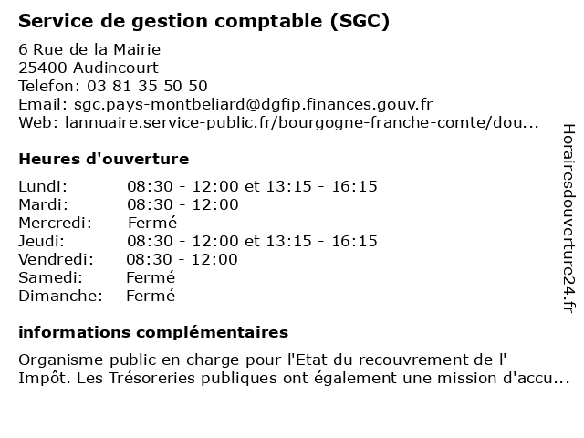 Termes de recherche pour Service de gestion comptable (SGC):de, administration, service, finances, trésor, gestion, impôts, public, trésorerie, publiques, d'audincourt, comptable, sgc |