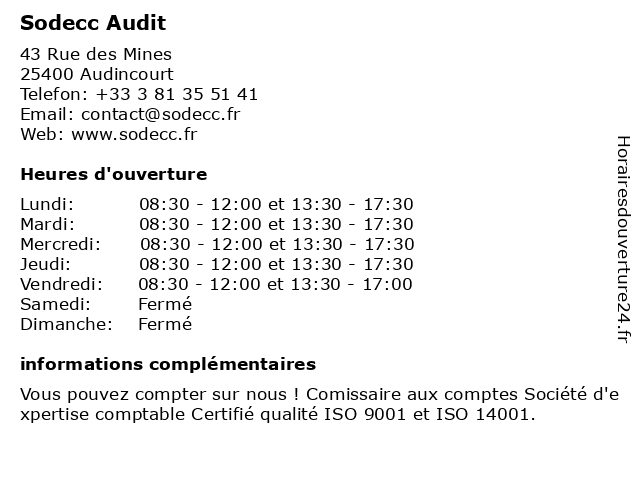 | Lundi | 08:30-12:00 et 13:30-17:30 |