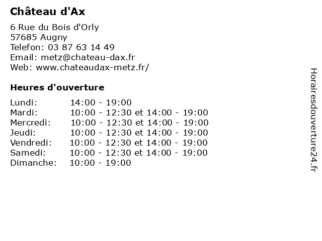 | Samedi | 10:00-12:30 et 14:00-19:00 |