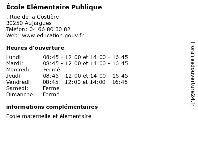 | Lundi | 08:45-12:00 et 14:00-16:45 |